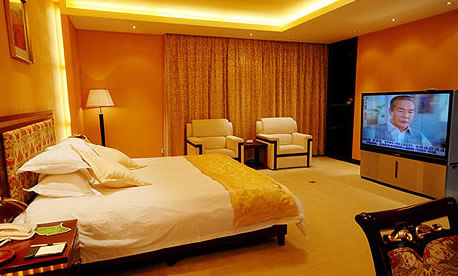 武陵源專家村賓館于2008年按準(zhǔn)五星級賓館標(biāo)準(zhǔn)進(jìn)行擴(kuò)建,總面積達(dá)4.8萬平方米.整體建筑宏偉,內(nèi)部結(jié)構(gòu)考究,既充滿了現(xiàn)代文明氣息,又孕育著古老的湘西民族文化.賓館現(xiàn)有客房共288間套,大小中、西餐廳8個,可同時容納800-1000人用餐;館內(nèi)還設(shè)有商場購物.物品寄存.票務(wù)代購.衣服洗燙.美容美發(fā).桑拿按摩等服務(wù)項(xiàng)目。