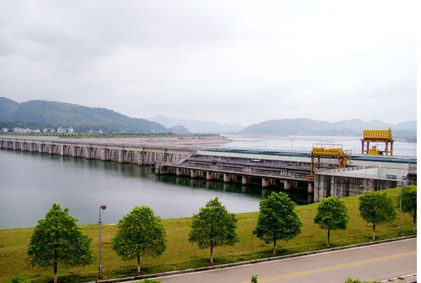 大壩的西面,是水利發(fā)電站,電站共有4臺機(jī)組,年發(fā)電量已達(dá)到5.56億千瓦小時(shí)。船閘座落在大壩的東側(cè),一次可通行二艘千噸級輪駁船隊(duì)。