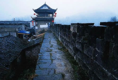 城墻上部為鋸鑿形狀,箭垜300個(gè),還有兩座外突的炮臺(tái)。站在炮臺(tái)之上,遙想當(dāng)年,箭垜旁刀戟林立,炮臺(tái)上人影浮動(dòng),還有城外山頭的碉樓狼煙滾滾,仿佛還看見(jiàn)刀劍交接之影,聽(tīng)見(jiàn)搏殺呼號(hào)之聲,剎那間產(chǎn)生一種悲壯感。1983年10月黃絲橋古城被列為省級(jí)重點(diǎn)文物保護(hù)單位。