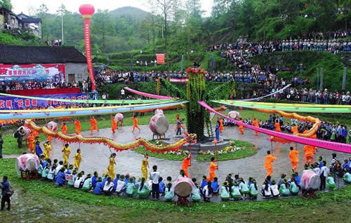 鮮麗奪目的苗族服飾,情調(diào)別致的攔門酒,風格獨特的卡鼓、攔路歌、邊邊場,會使你耳目一新,如癡如醉;還有傳統(tǒng)節(jié)日"四月八"的跳月跳花,"六月六"的山歌對唱,又會使您心動神搖,嘆為觀止。