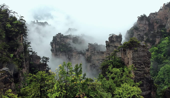 楊家界雪景 作為世界自然遺產(chǎn)武陵源四大核心景區(qū)之一的楊家界景區(qū),地勢險要,風景絕美,跟張家界、天子山、索溪峪比較,其中的地質(zhì)地貌一部分相同外,又有其獨特的資源優(yōu)勢,擁有全球罕見的峰墻群奇光。乘坐在舒適的楊家界索道里,可以盡情體驗“會當凌絕頂,一覽眾山小”的居高臨下與動感,360度暢游夢想般的楊家界仙界,俯瞰“近在咫尺”的千山萬壑,山舞銀蛇,千嬌百媚的絕美“峰墻”盡收眼底,無限風光在險峰,數(shù)十道氣勢如虹的石墻,一排排層巒疊嶂,相對平行而立,高矮參差不齊,宛如“天然長城”,真是美輪美奐,絕景天賜,不得不讓人驚嘆大自然的璧山開地之功。