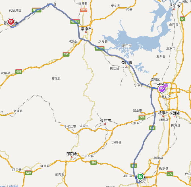 左右,沿途經過衡陽——湘潭——長沙——益陽——常德——慈利——張家界市。