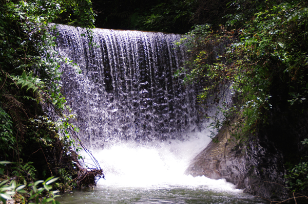 我們觀看的第一個景點是巖板橋,合潭。巖板橋,它寬1.43米,厚43公分,長3.8米。傳說在毛澤東逝世的1976那年,這里被拆裂成兩半,1979年又遭受了洪水災(zāi)害,洪水把這里的橋沖毀,并且沖走了兩個小孩,吞食了他們的生命,奇怪的是,被水沖走的殘石碎片卻找不到半點蹤影。見證著歷史,受過災(zāi)難的洗禮,如今以新的姿態(tài)迎接各位嘉賓的到來。合潭,是西線仙女峽谷與東線十八潭的交接處,匯合處,所以叫合潭,“合”“和”同音,意味深長。