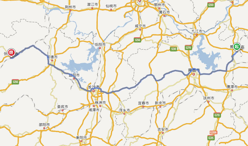 景德鎮(zhèn)去張家界自駕車(chē)自助游線路圖全程高速):