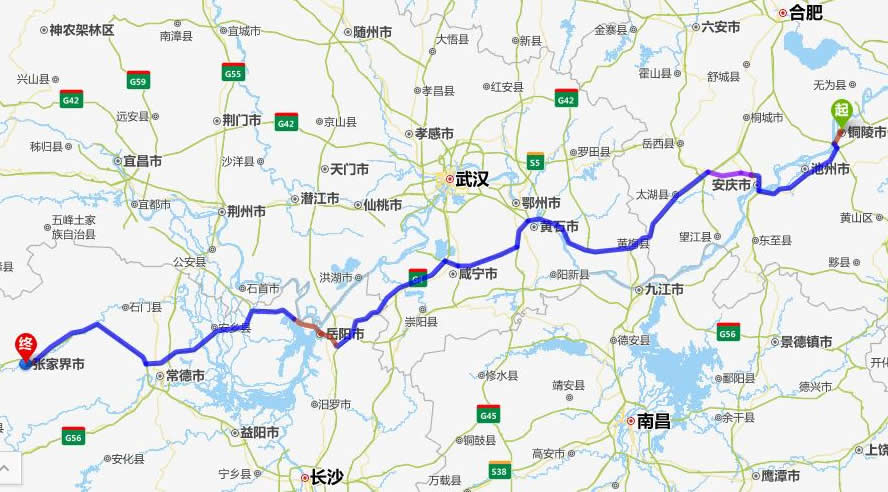 銅陵去張家界自駕車(chē)自助游線(xiàn)路圖全程高速):