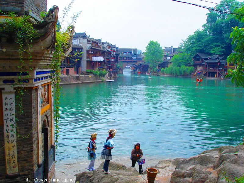 【鳳凰古城位于沱江之畔、群山環(huán)抱、關(guān)隘雄奇、碧綠的沱江依著城墻緩緩流淌,疊翠的南華山麓倒映江中,江中漁舟游船數(shù)點(diǎn),山間暮鼓晨鐘兼鳴,懸崖上的吊腳樓輕煙裊裊,碼頭邊的浣紗姑笑聲朗朗,兩岸已有數(shù)百年歷史的吊腳樓更是別有一番風(fēng)味;順?biāo)麓┻^虹橋一幅江南水鄉(xiāng)的畫面便展現(xiàn)于眼前--萬壽宮、萬名塔、奪翠樓……一種遠(yuǎn)離塵世的感覺悠然而生;鳳凰--猶如“一幅濃墨淺彩的中國山水畫”】